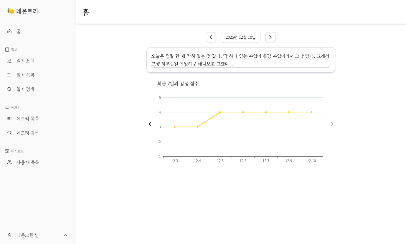 일기를 쓰고, LLM을 통해 메모리를 생성하여 기록하고 분석해보세요!