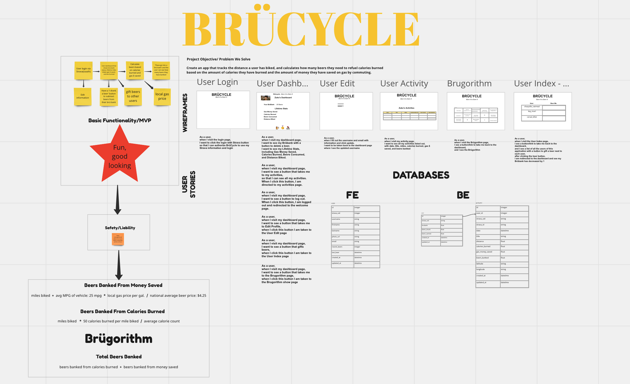 BrüCycle was developed to inspire users to choose a more eco-friendly mode of transportation. Using the Brügorithm™, you will track your biking exercise data via Strava, and the number of beers that you have accumulated during said exercise. You will accumulate beers in your Beer "Brü" Bank based on the amount of miles and calories burned in bicycle rides you've completed.