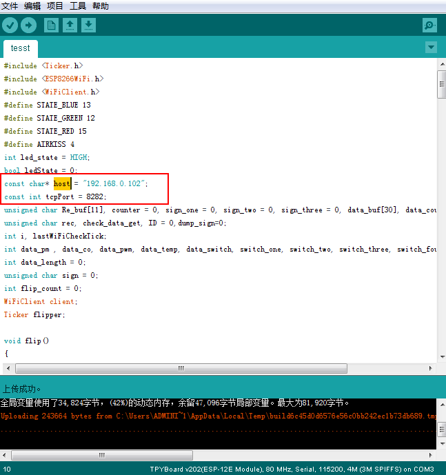 Connect ESP8266 to computer COM and open Arduino IDE to upload the firmware