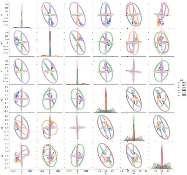 - Four different feature columns to specify which phase is faulted and if the connection to ground is faulted