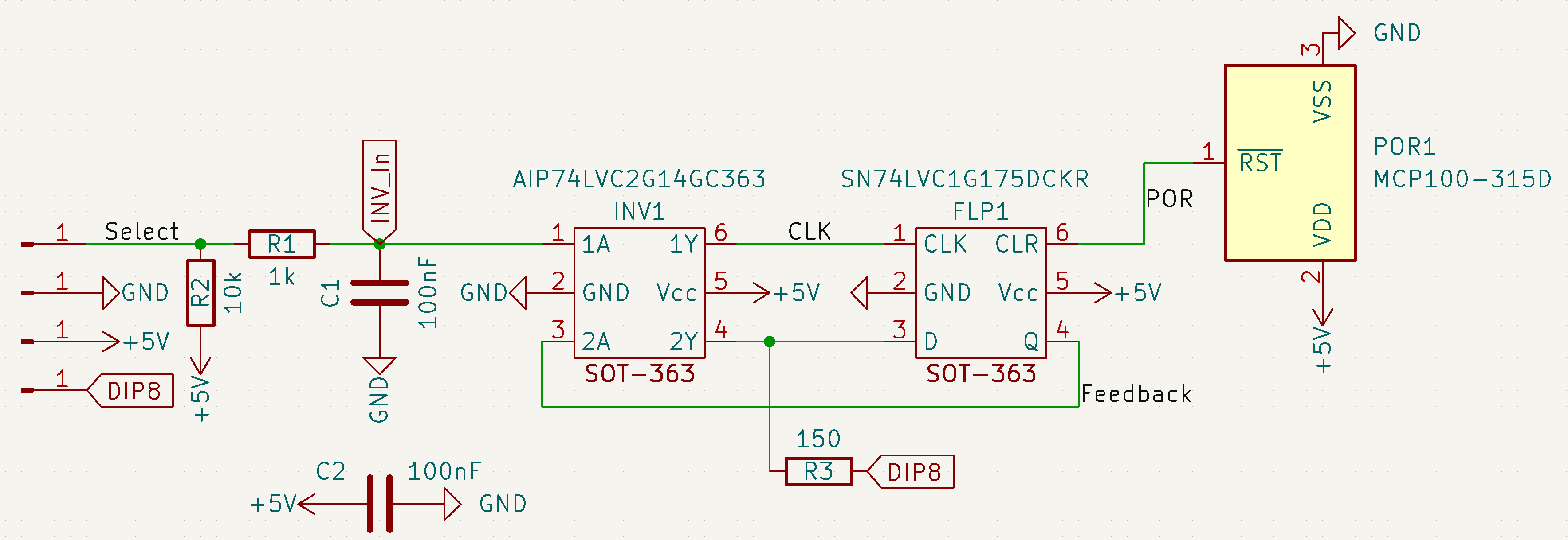 - One SN74LVC1G175DCKR or equivalent SOT-363 flip flop (FLP).