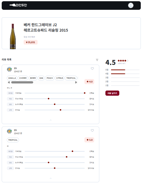 - 다양한 와인에 대한 사용자 리뷰 데이터베이스 구축
