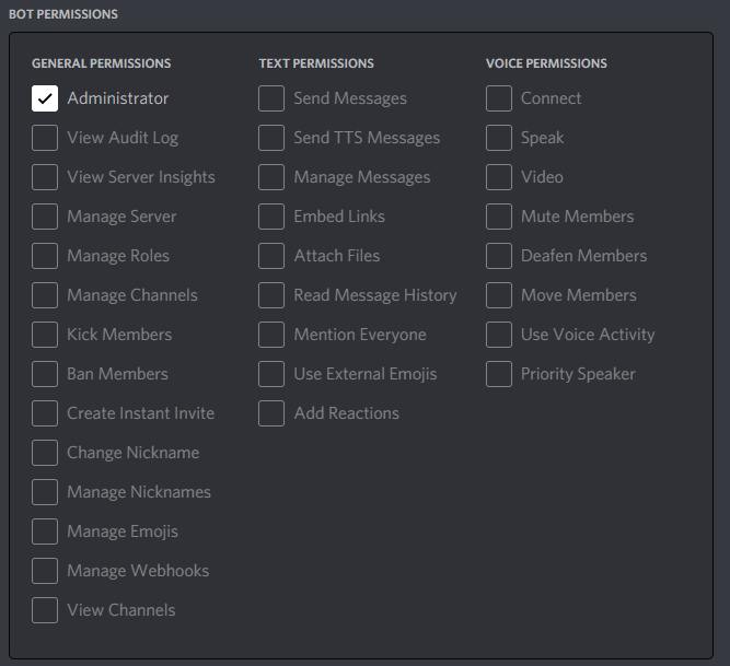Боту на сервере нужно выдать администратора, или встроить администраторку заранее в OAuth2