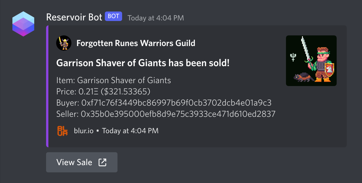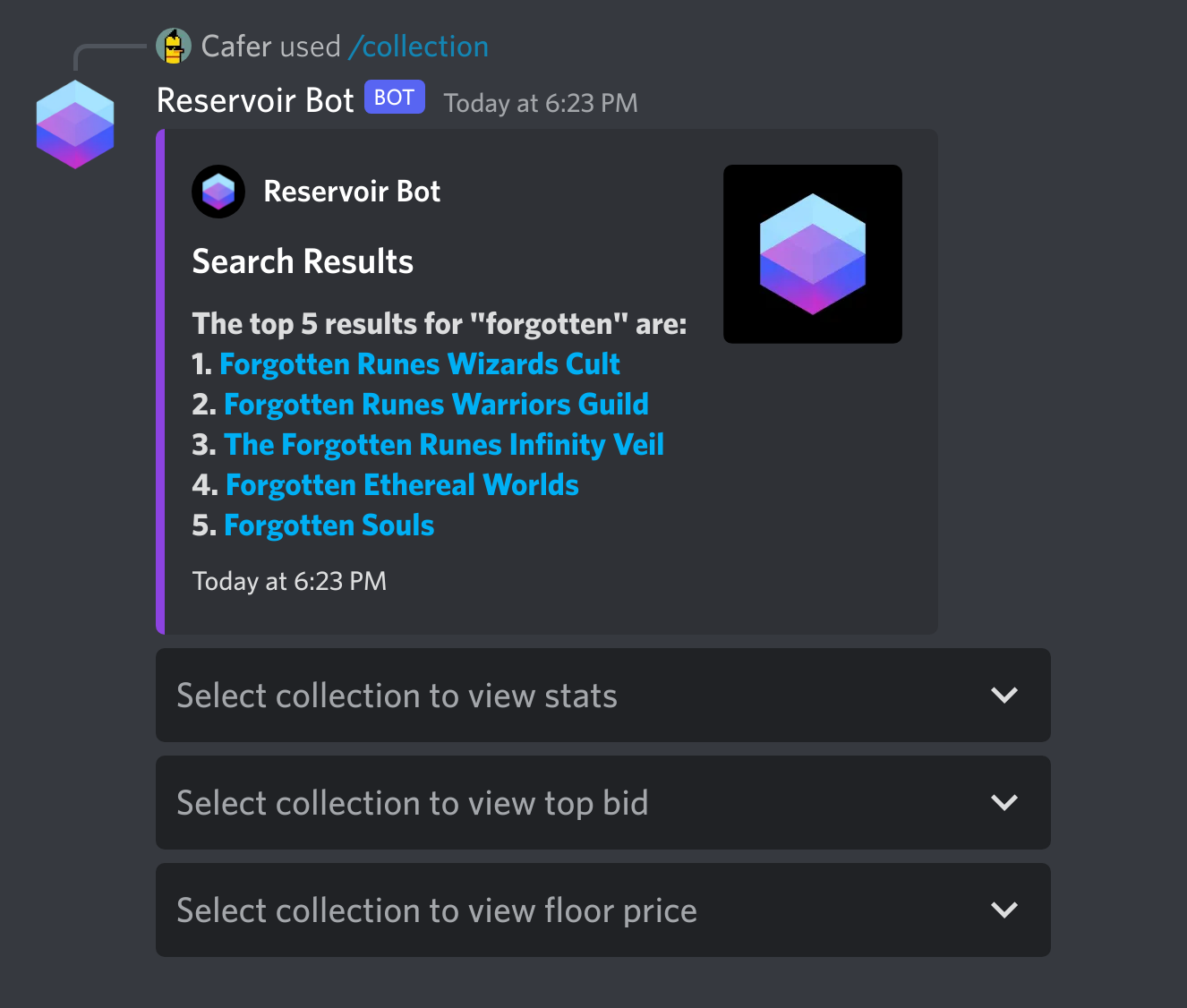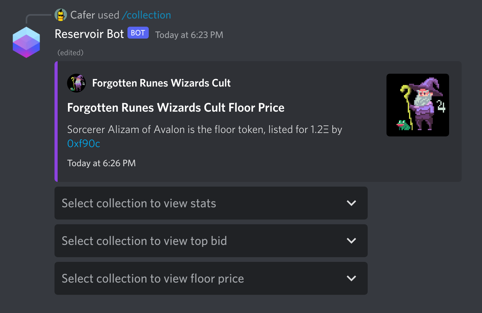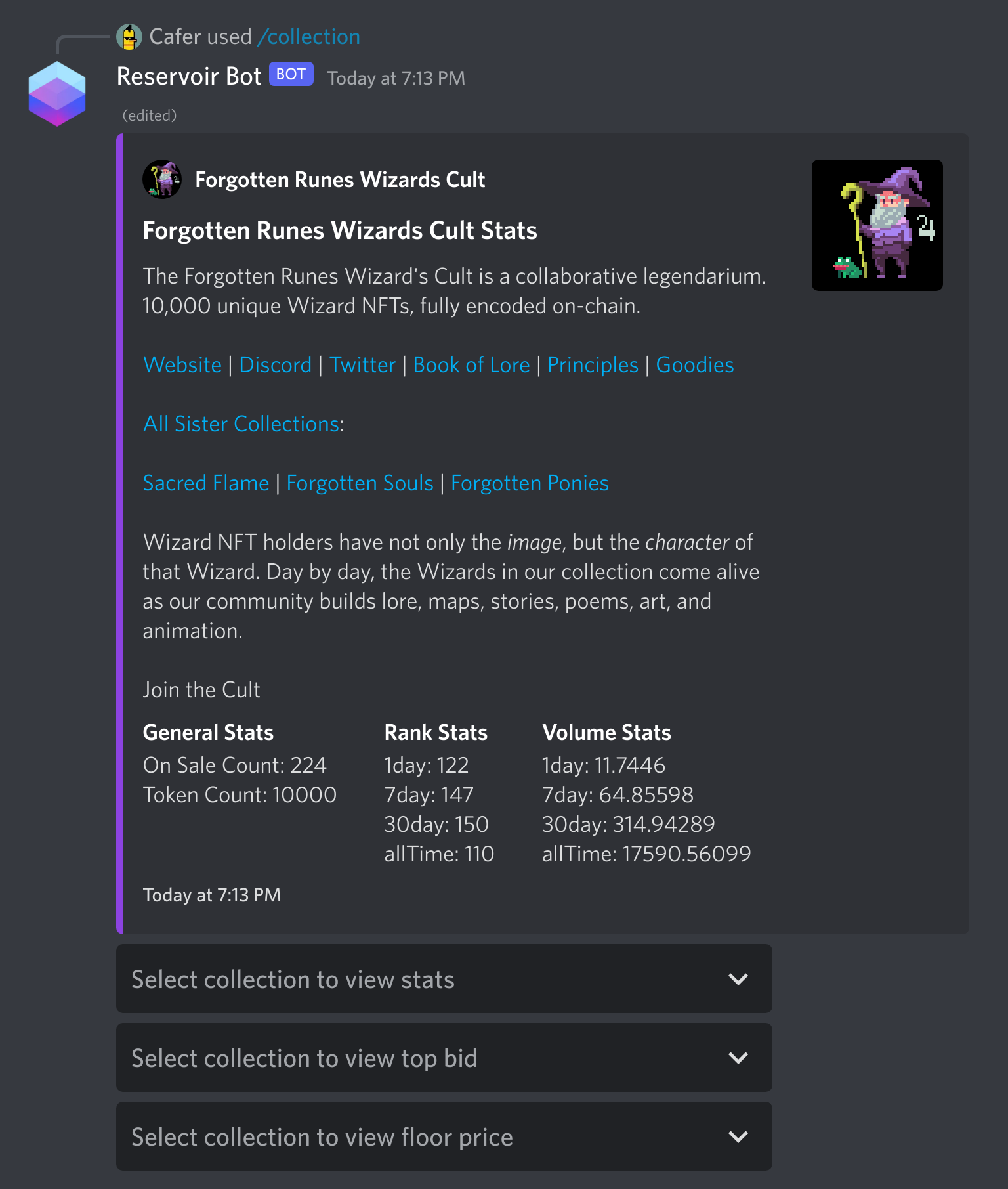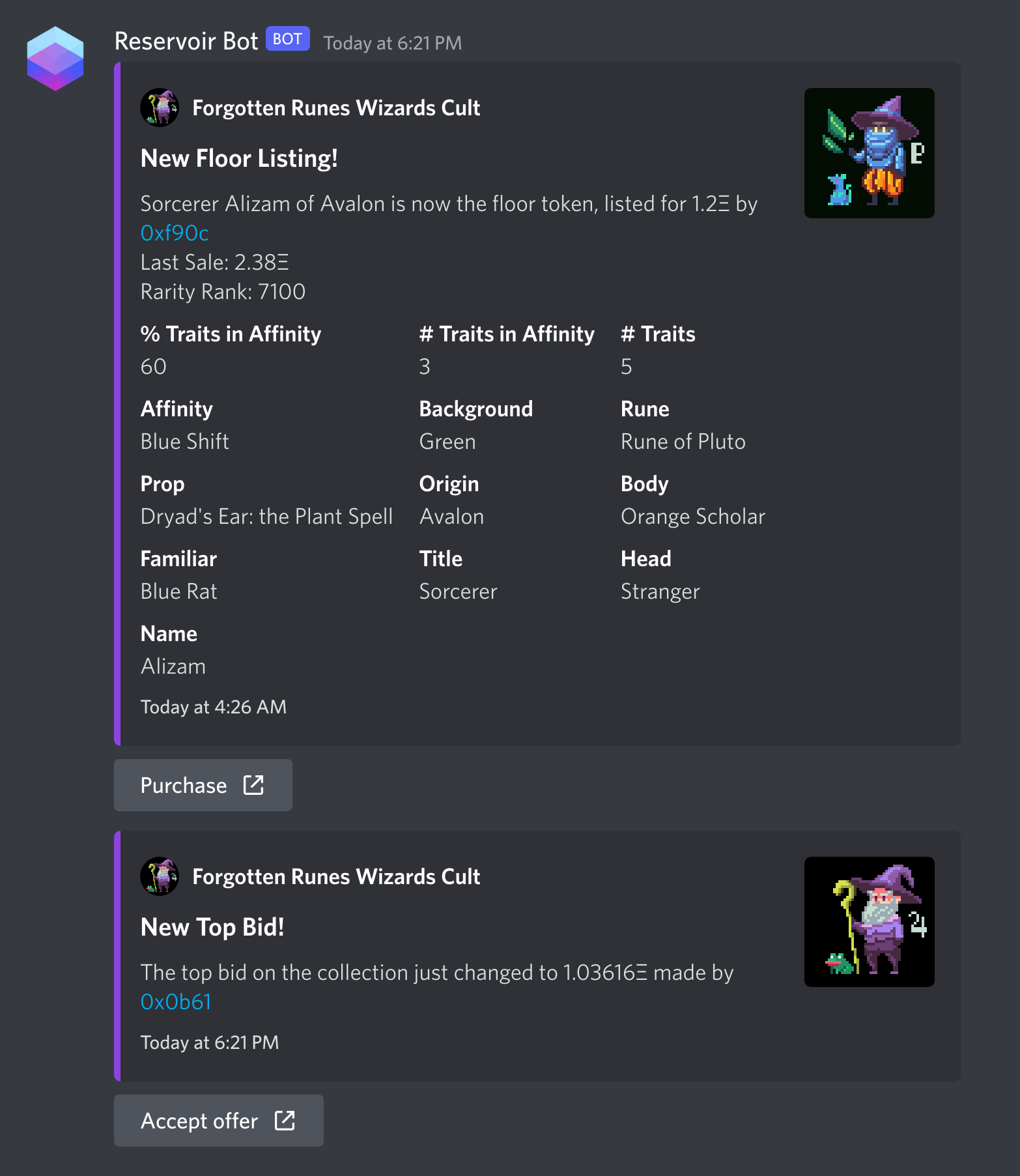 Reservoir Discord Bot provides communities easy to use commands and alerts for their Discord server, which can be expanded and customized to their liking. Come test the bot out now in the Reservoir discord server!
