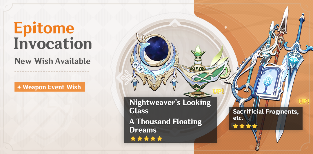 ◆ The event-exclusive 5-star weapon "Nightweaver's Looking Glass" (Catalyst) can be obtained from the Event Wish. Please refer to the relevant official Event Notices for specific acquisition details.