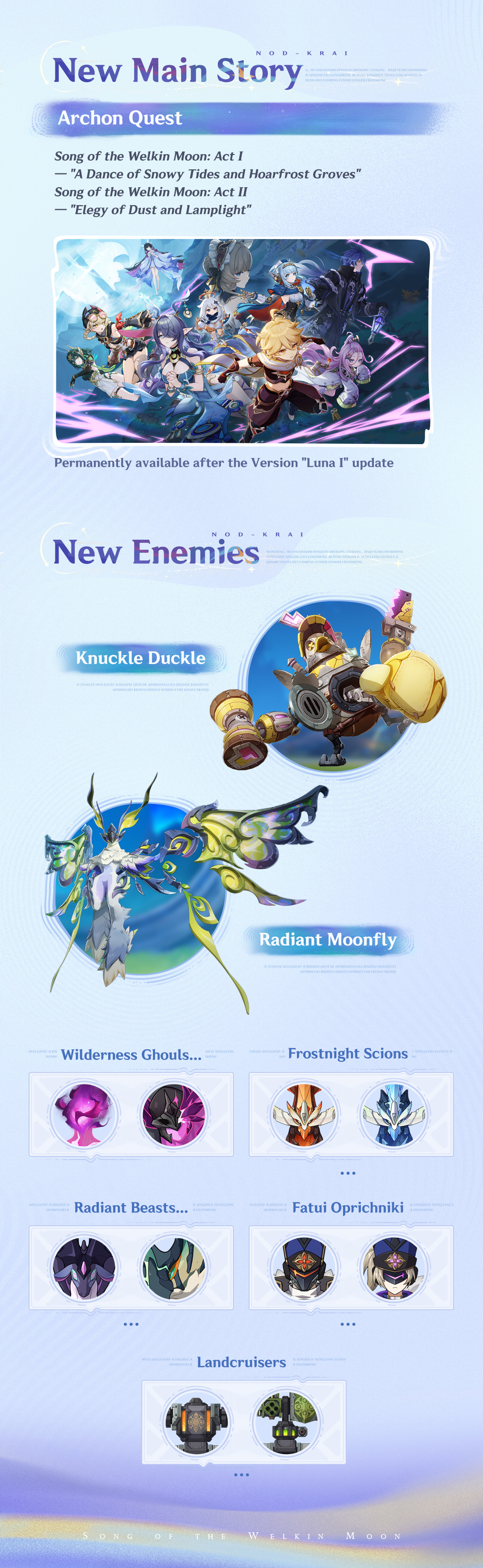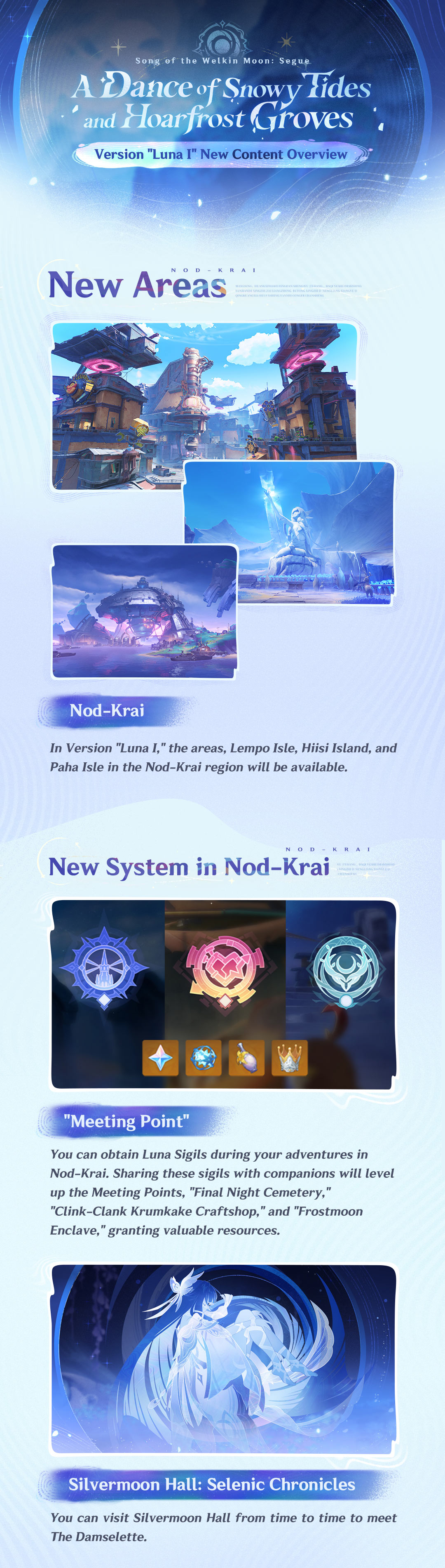 Below are the details of the Version Luna I update "Song of the Welkin Moon: Segue - 'A Dance of Snowy Tides and Hoarfrost Groves'" and the update compensation.