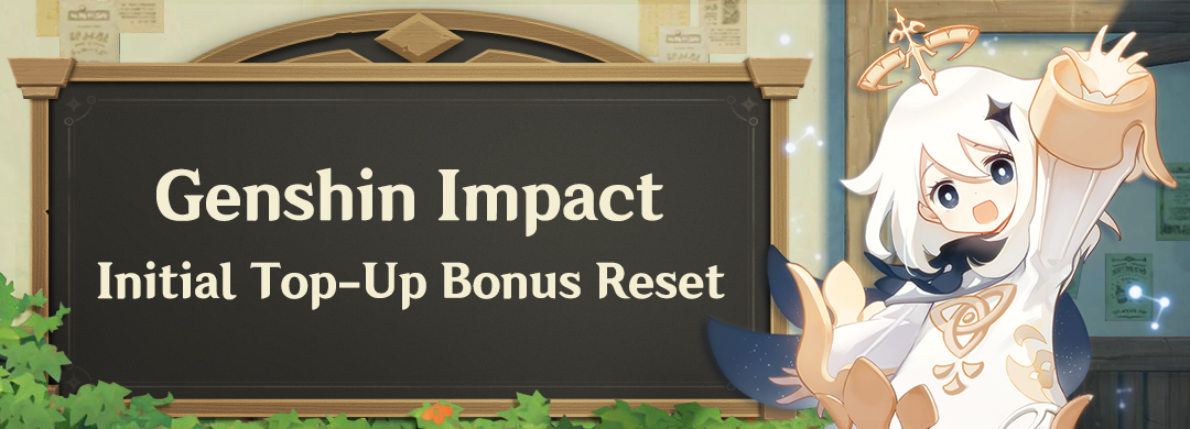 After the Genshin Impact Version "Luna I" update, each top-up level of Genesis Crystals in the Crystal Top-Up page will be reset to provide a double bonus for the first top-up.