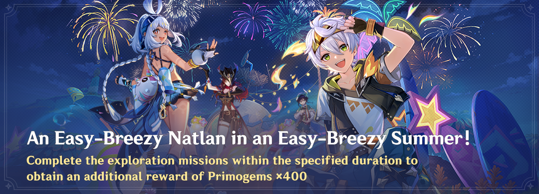 "An Easy-Breezy Natlan in an Easy-Breezy Summer!" Event: Complete the Exploration Missions Within the Specified Duration to Obtain an Additional Reward of Primogems ×400
