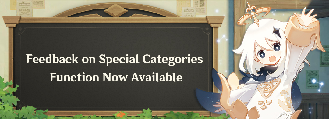 To enhance everyone's game experience, the team has opened a new channel for "Feedback on Special Categories." Travelers can send their opinions and suggestions through this channel, and we will listen carefully to your feedback.
