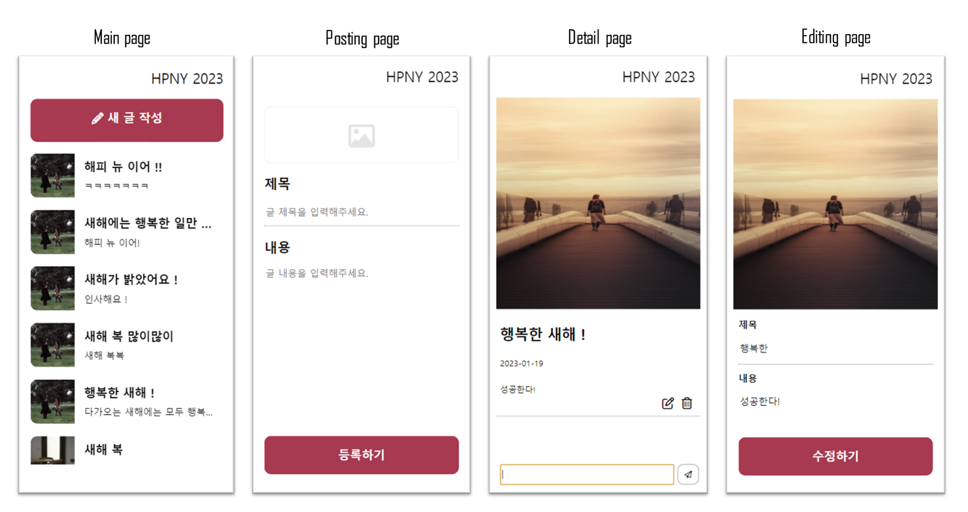 User can post messages including title, content and image, but the image is randomly and automatically choosen when user click the post-button.