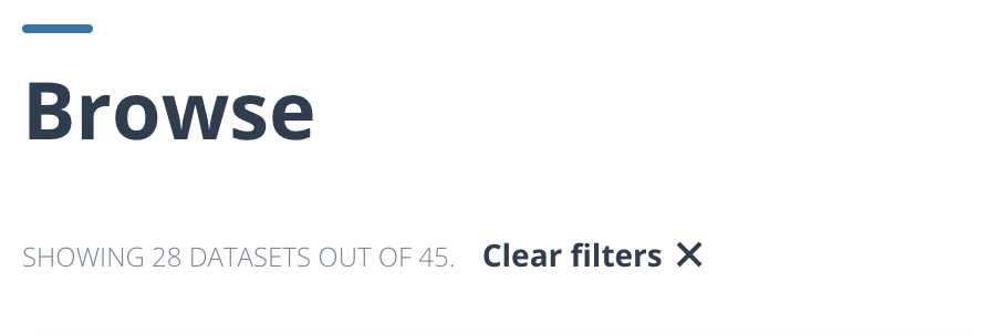 'Showing 2 datasets out of 45 clear filters' or 'Showing all 45 datasets'