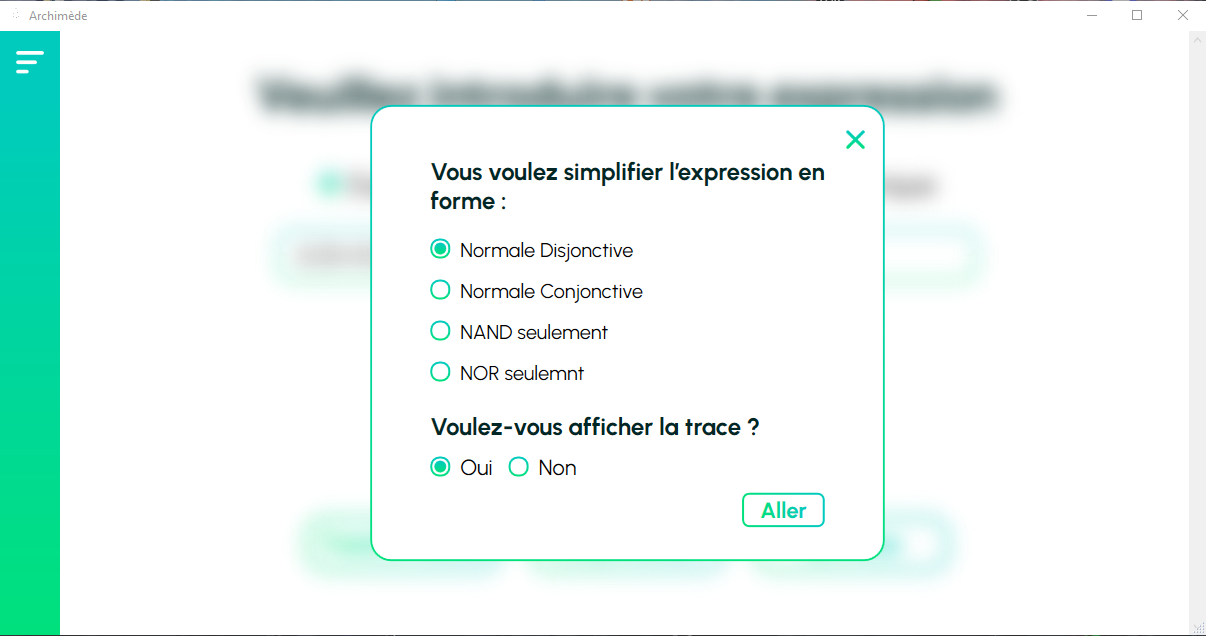- Simplification : Une fois le boutton avec le libbelé "Simplification" est cliqué, un autre pop-up s'affiche offrant les possibilités d'affichage du résultat suivantes :