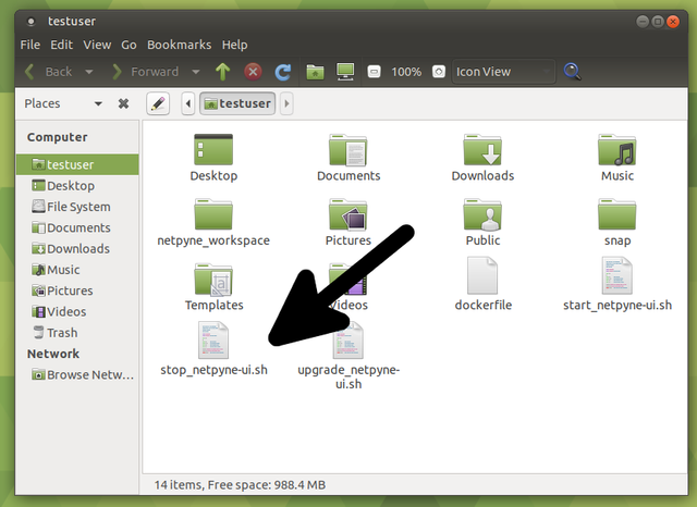 Good, if you arrived until this point we are now ready to use NetPyNE-UI. You can follow this procedure either using the terminal or the graphic interface, I will continue to use the UI in my case. First of all open the folder on the desktop called "testuser's Home".