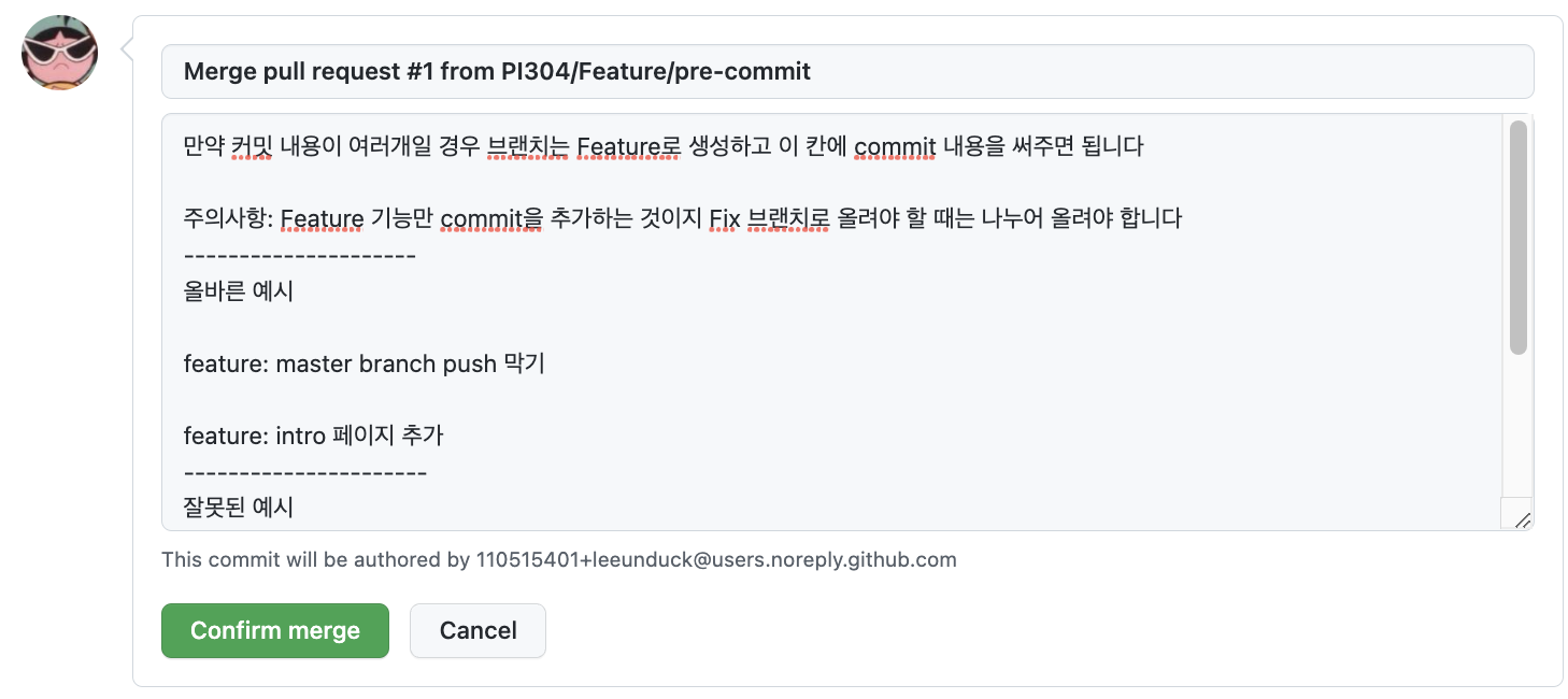 - 본인이 생성한 PR 에 대해서는 본인이 머지를 수행하도록 합니다.