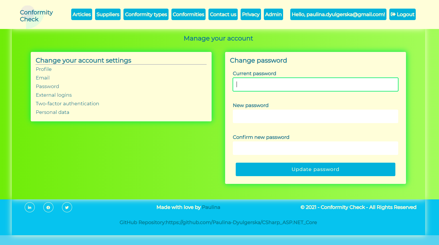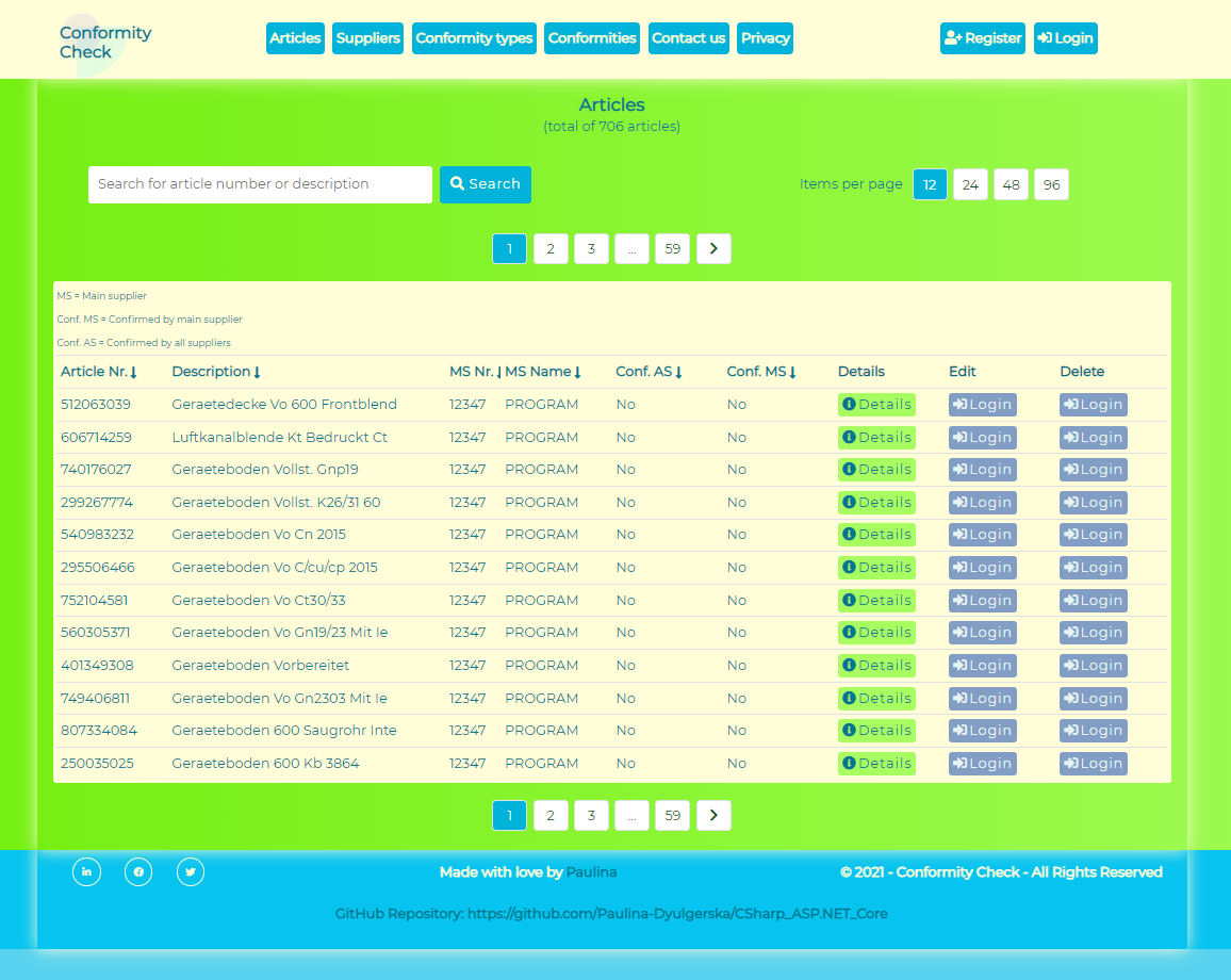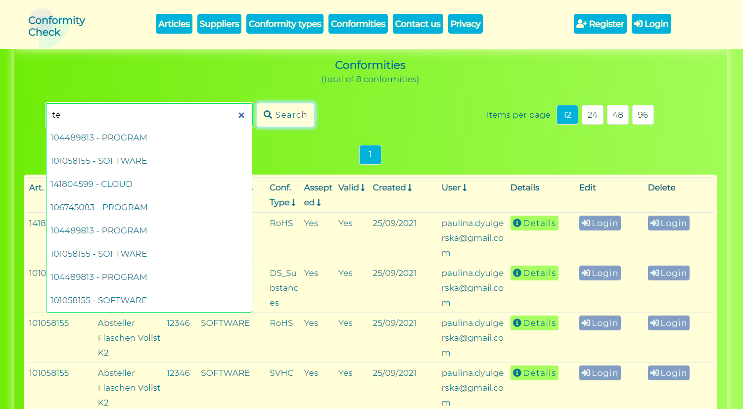 Conformity Check is a project that manages legal conformity requirements for articles, suppliers and products.