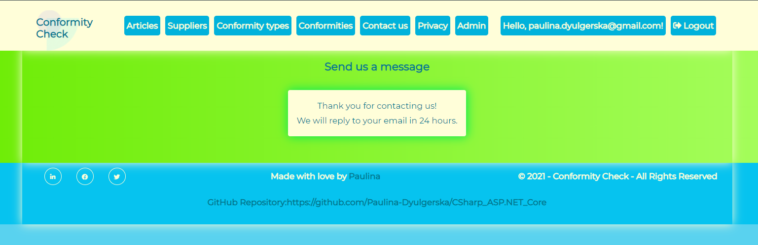 - Information for contact messages to admin and to contacted user - sending e-mails to both of them