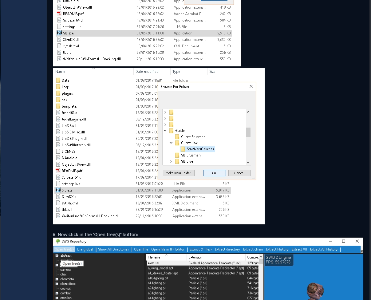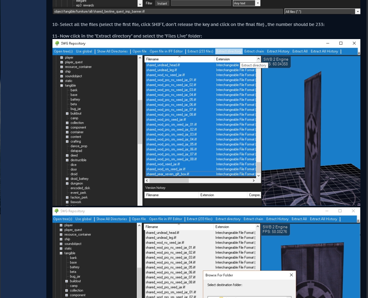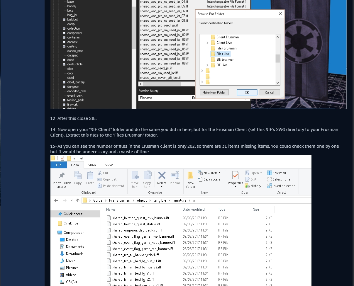14- Now open your "SIE Client" folder and do the same you did in here, but for the Erusman Client (set this SIE's SWG directory to your Erusman Client). Extract this files to the "Files Erusman" folder.