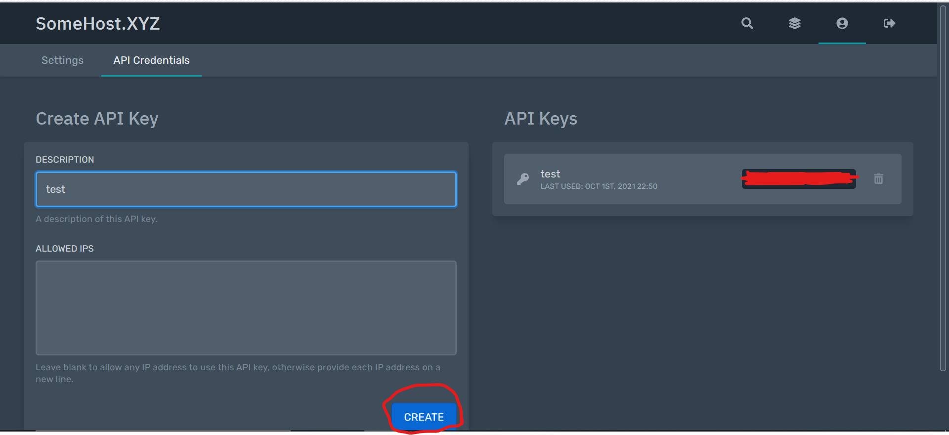 - Enter a name for the key and click "Create Key".