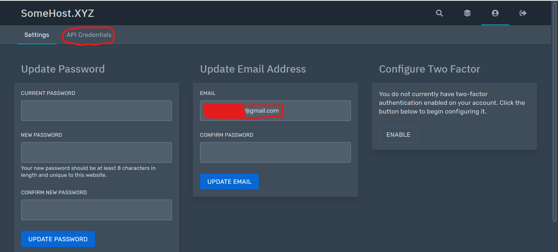 - Click on the "API Credentials" tab.