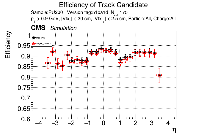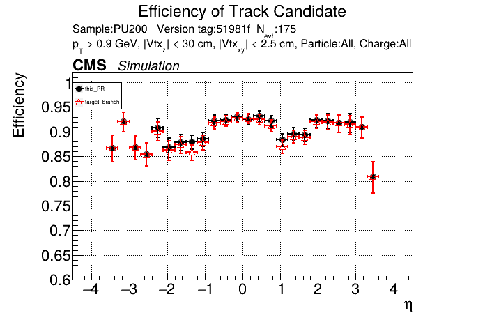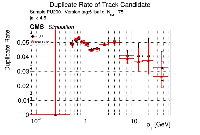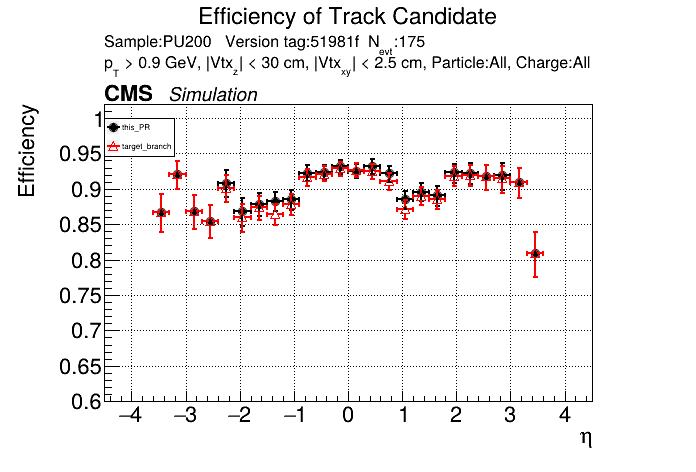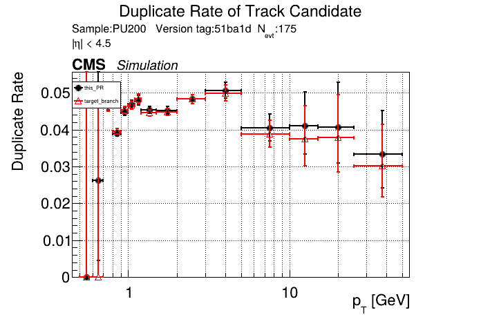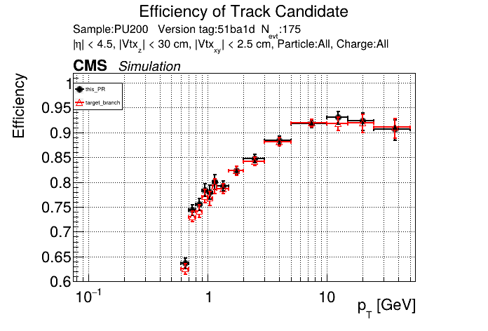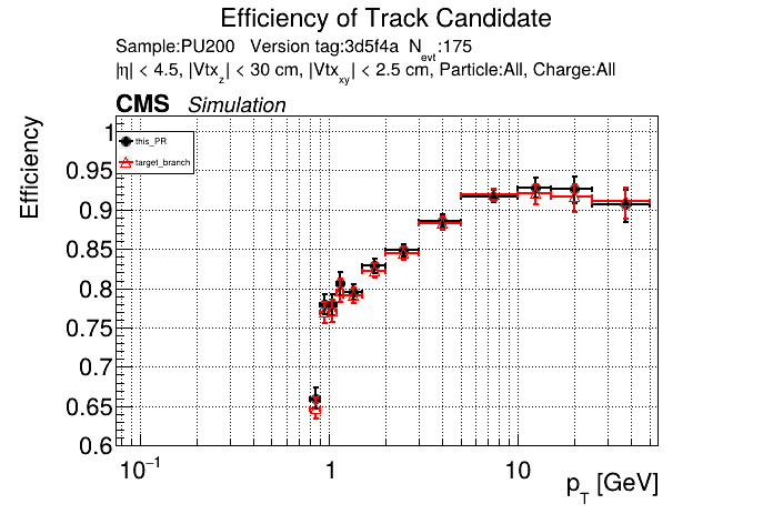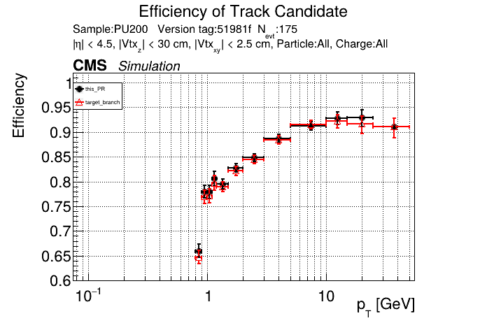 The PR was built and ran successfully in standalone mode (low pT setup). Here are some of the comparison plots.