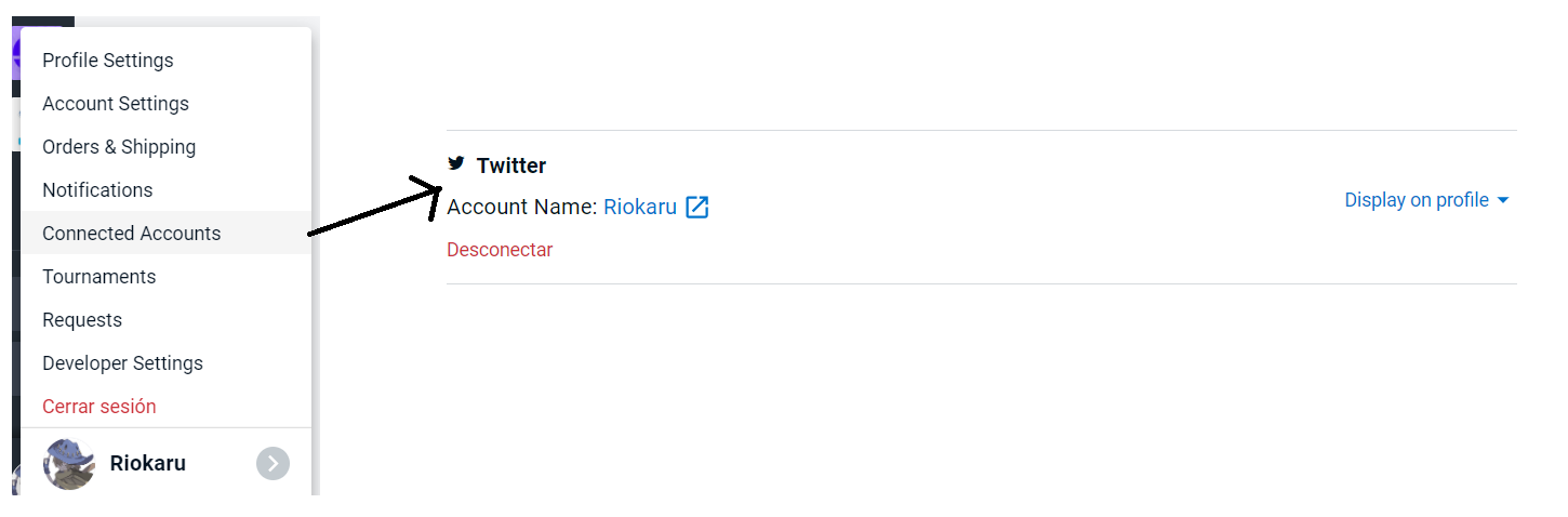 SmashResultsVE toma la cuenta de twitter asociada a start gg. Si quieres que aparezca en el tweet en el futuro debes conectar tu cuenta de twitter a tu cuenta de start.gg y habilitar la opción "Display on profile". Si no se encuentra una cuenta de twitter asociada, se intenta buscar en los datos del censo con el mismo método descrito arriba.