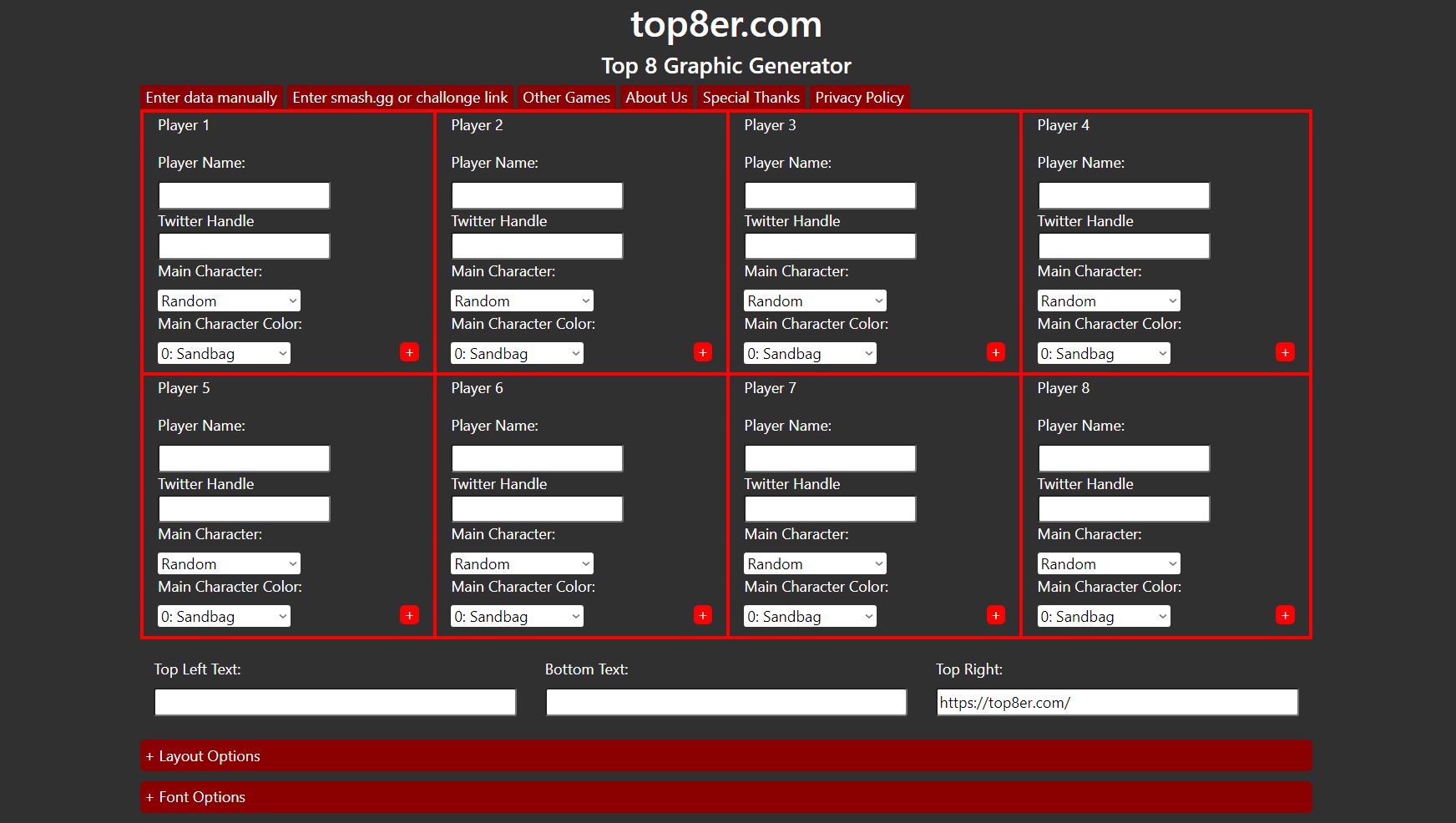 - Option to import data from a start.gg, challonge, or tonamel link.
