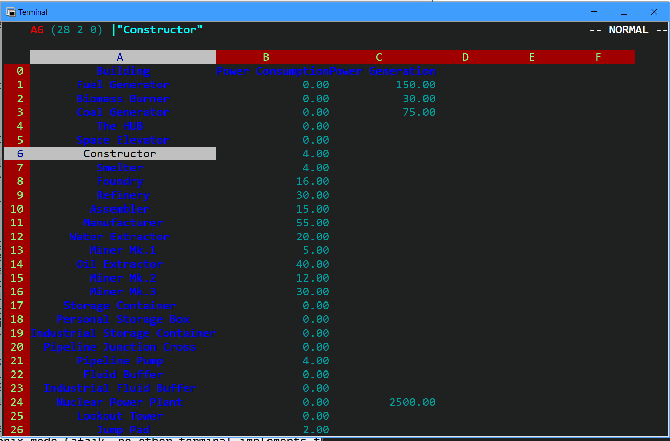 sc-im - Spreadsheet Calculator Improvised -- An ncurses spreadsheet program for terminal