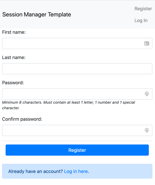Start by clicking the "Use this template" button in Github at https://github.com/astromitts/django-session-manager