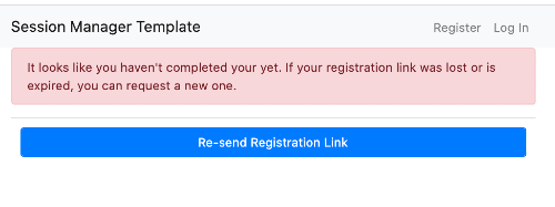 Note Registration and login links are set to expire in 48 hours by default. If a user fails to use their registration link before it expires, they will be prompted to resend it next time they attempt to register or login with the same email address: