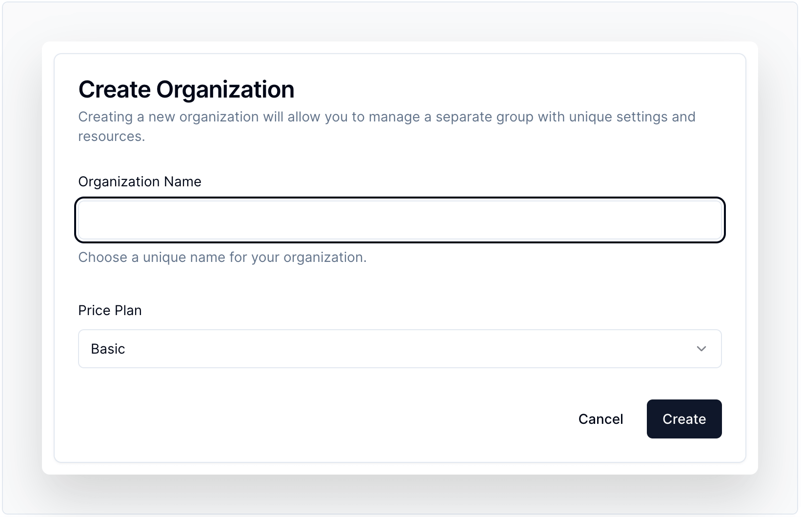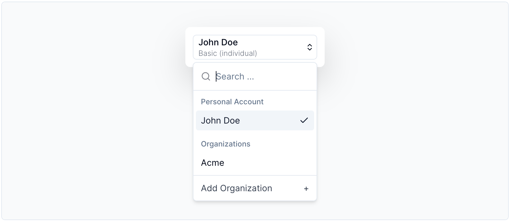 Enables users to easily switch between different organizations or create new ones. For more info, visit the component docs.