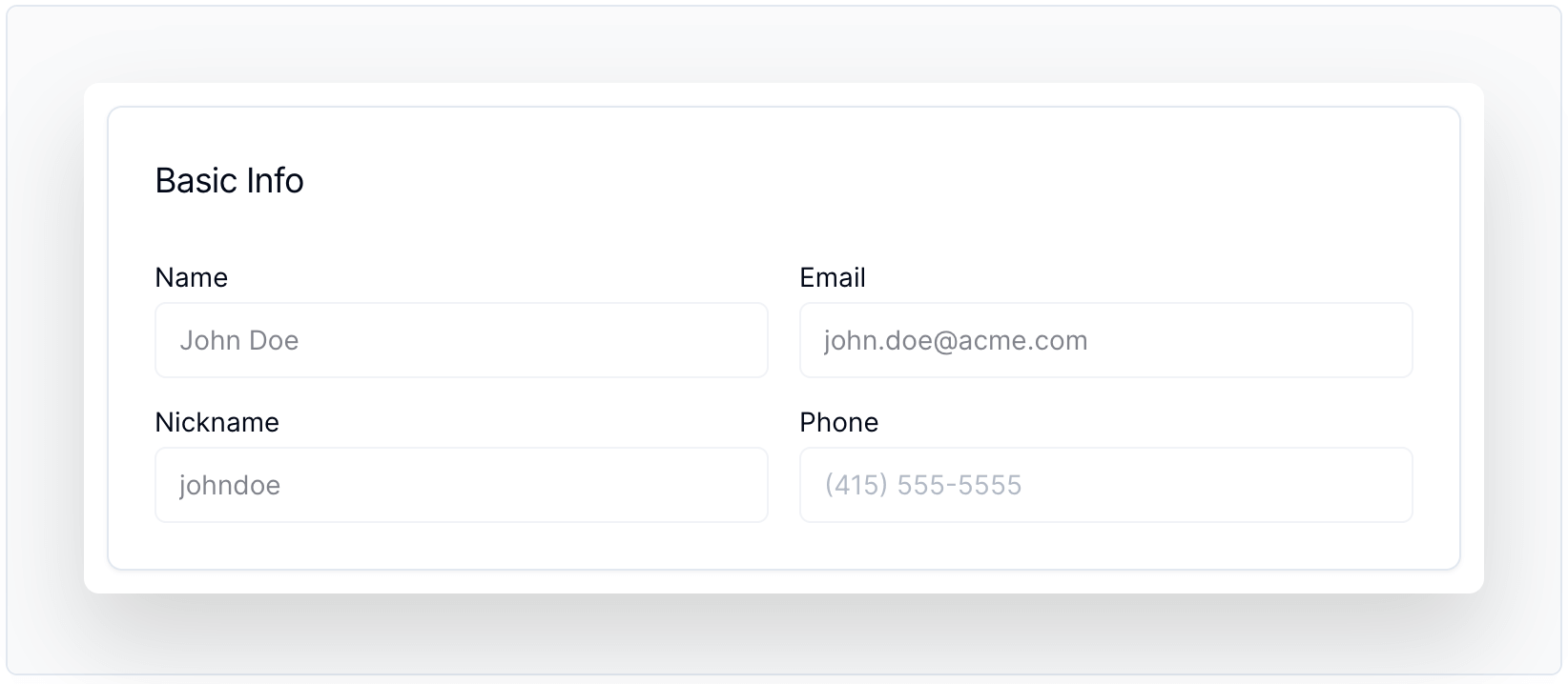 Displays essential user details, including name and nickname, providing a quick glance at user information. For more info, visit the component docs.