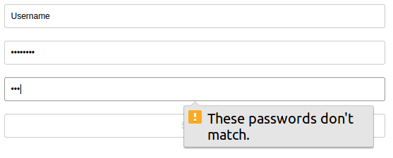 CompareTo is a custom HTML5 attribute that compares two passwords with one another. If the passwords are not the same, a native error will be shown to the user: