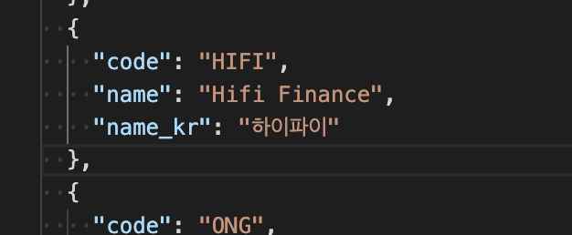 업비트에서 얻은 HIFI코인의 종목이름 ./api_server/data/getData.js의 getMarketCode()