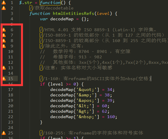 配置好后,保存的时候可以看到不合规范的代码行前面有明显的提示: