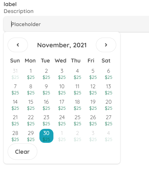 Upgrade the existing calendar in the React UI Library to optionally support Prices under the Days of the Month.