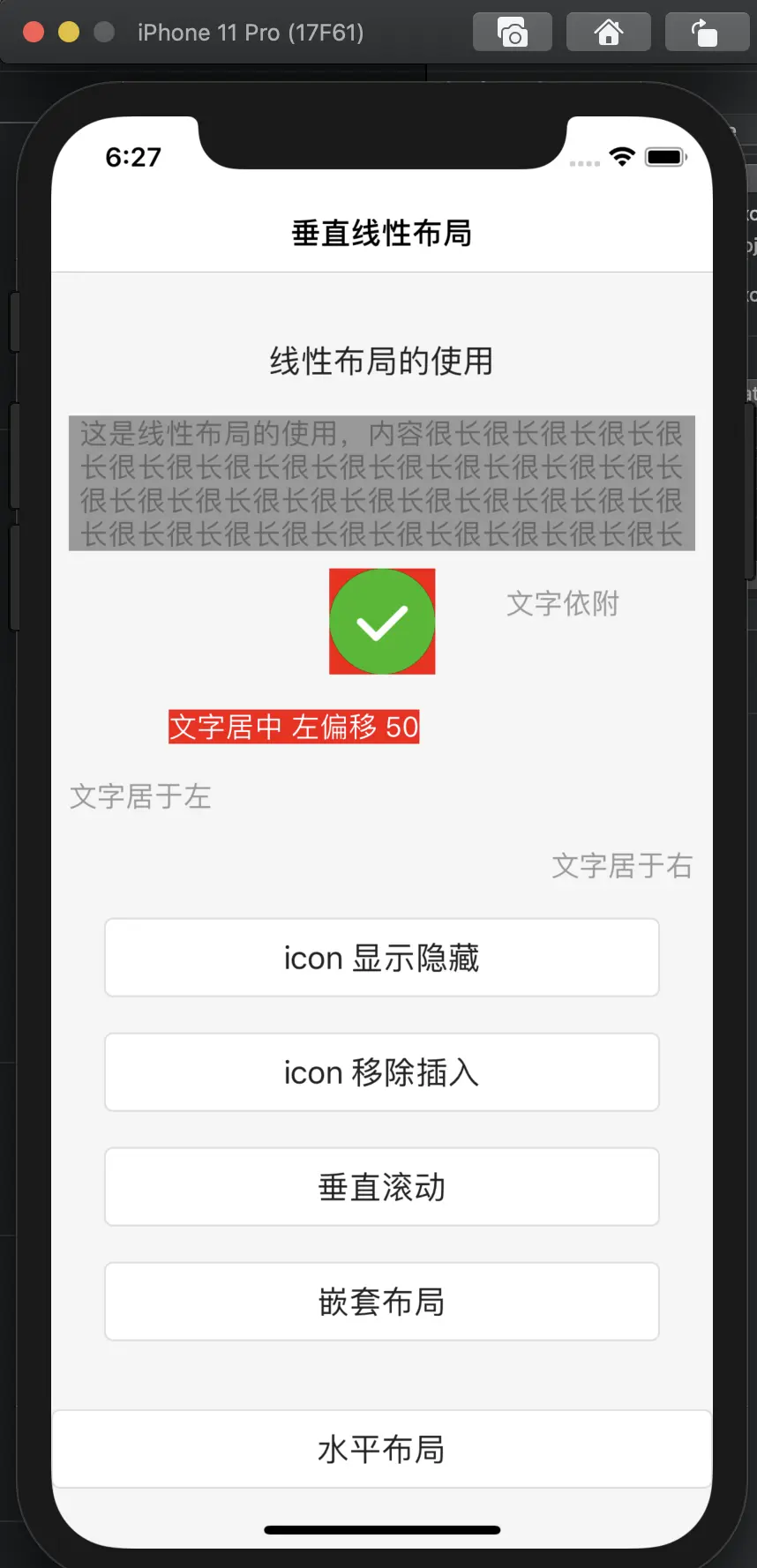 这个布局是一个垂直的主干, 加上一个依附的 “文字依附” UILabe。