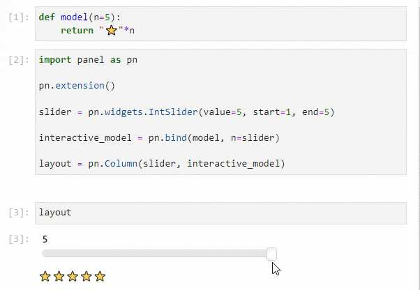 panel serve name_of_notebook.ipynb --showDevelop applications in your favorite notebook or editor environment, including Jupyter(Lab) notebooks, VSCode, Google Colab and many more, see our getting started guide for more details.