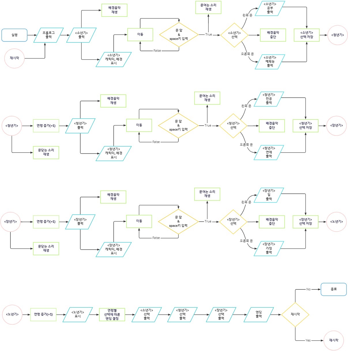 | 11~12주차 | 5월11일 ~ 5월24일 | <소년기>, <청년기>, <장년기> 선택지 코드 작성 |