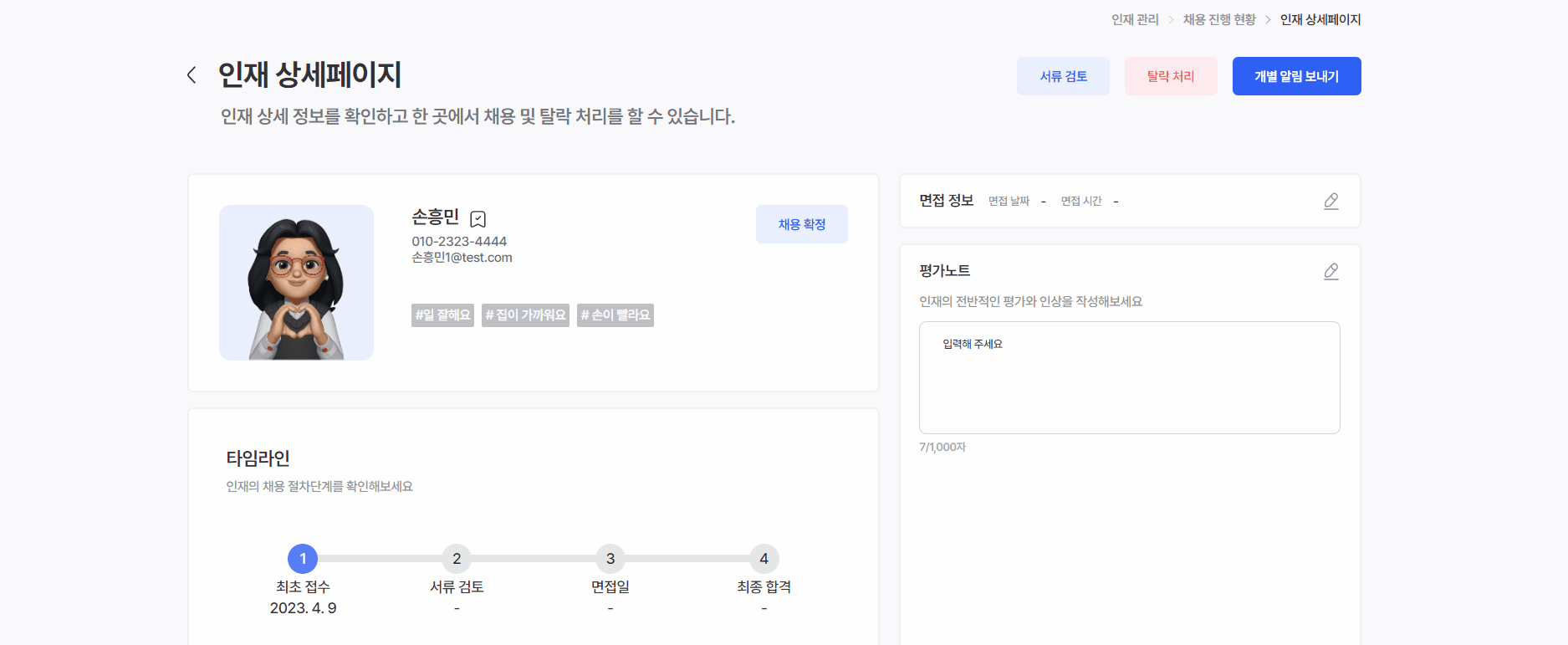 - 탈락 처리가 된 인재는 탈락 인재 보관함으로 이동합니다.