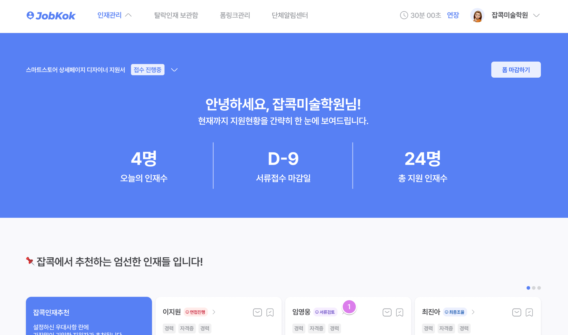 지원자 모집부터 채용까지의 과정을 간편화하여 1인 기업 사장님들의 인사 업무 부담을 줄이고 원하는 인재와 자동으로 매칭 시켜주는 서비스입니다.