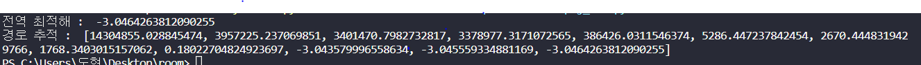 -3.046으로 지역 최적해에 빠지지 않고 전역 최적해를 잘 찾은 것을 알 수 있습니다.