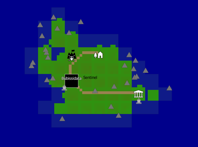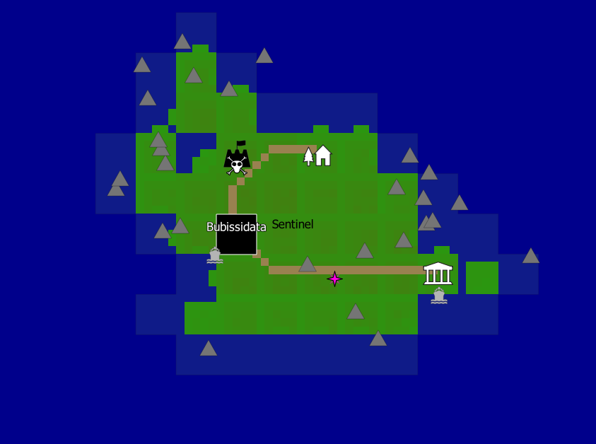 Now let's go find Bubissidata. It's on an island in the Sentinel region. If you're not sure where that is, activate the Regions layer for a moment and it will superimpose the region borders on top of the base map. Bubissidata is just north of the capital: