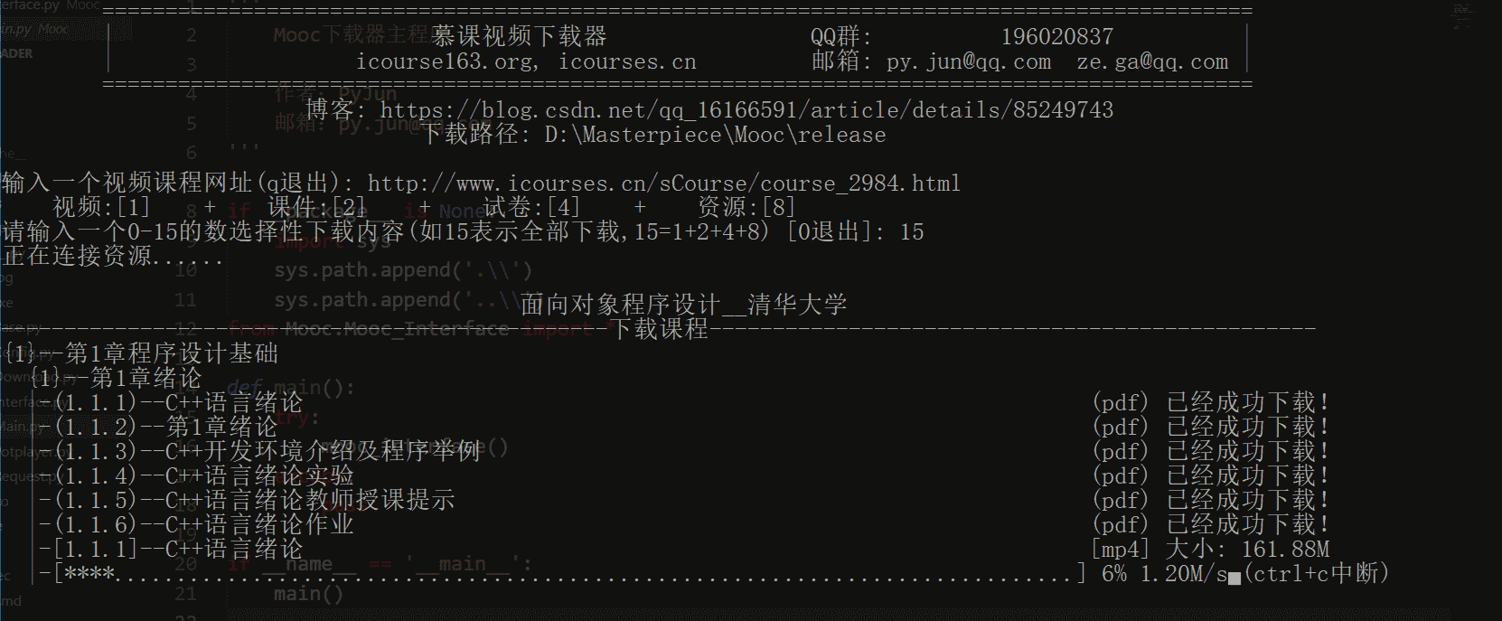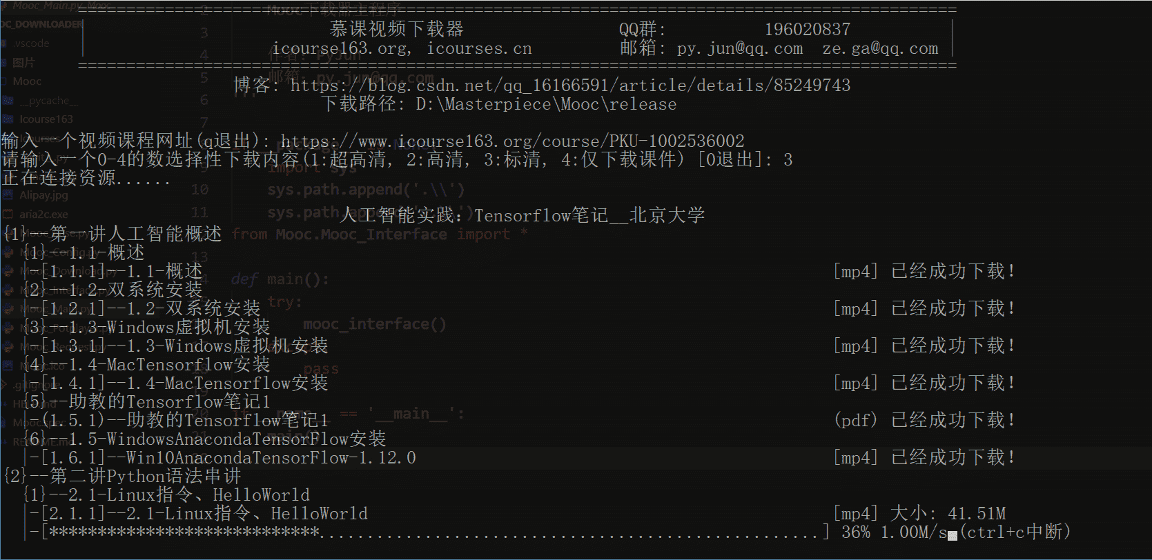 - Icourse163_Mooc.py 中国大学慕课下载器得子类,继承自 Icourse163_Base.py