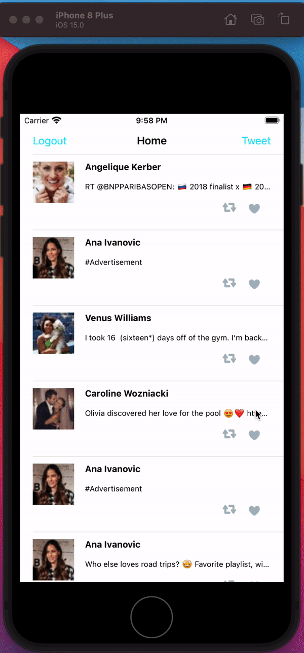 - User can load past tweets infinitely. (2pts)