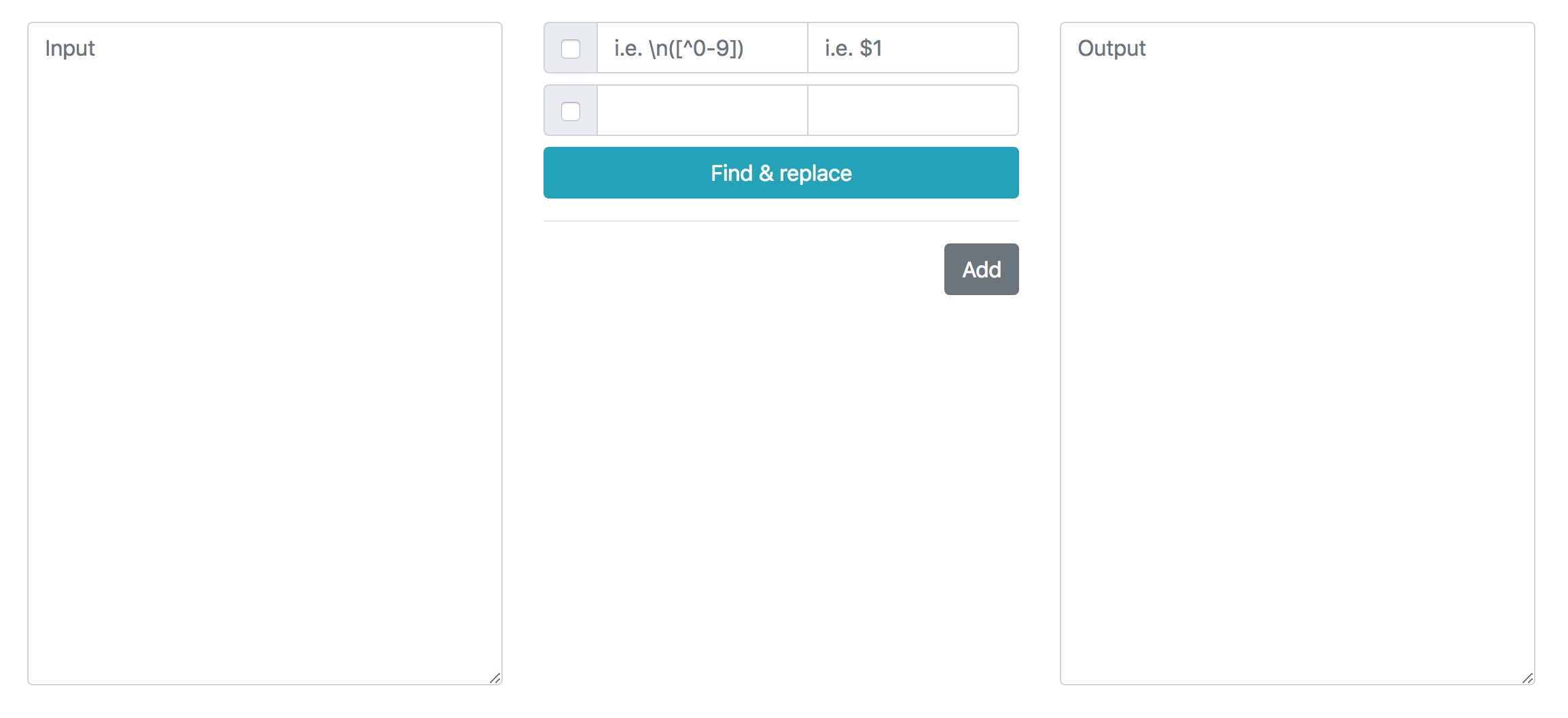 Find and replace multiple times at once. You can use regular expressions. Flags are set to "g"-lobal and "m"-ultiline search. You can modify it in source.js