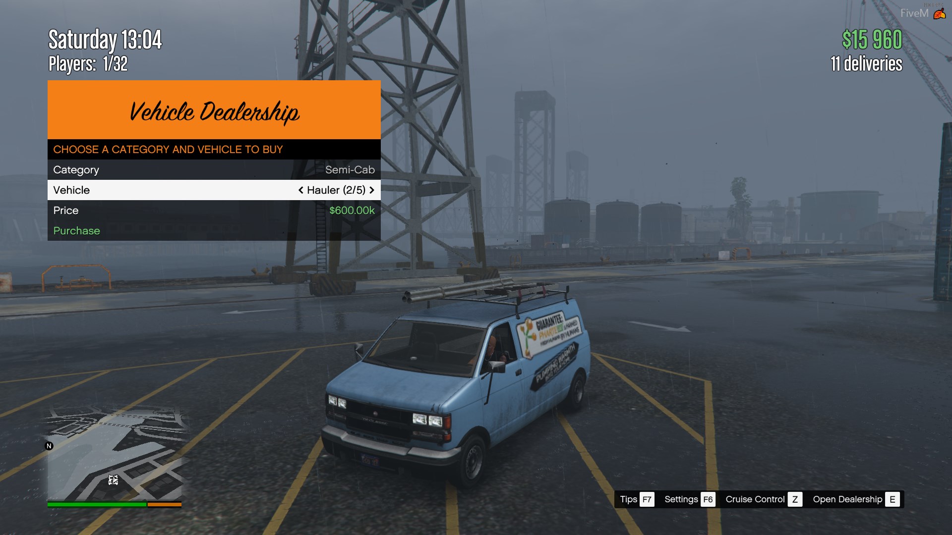 Getting started you are put in a van, your only goal at this point is to locate a nearby job and complete it. Upon completing a couple jobs, you should be able to afford a better vehicle. By purchasing new vehicles, you can earn more from your jobs.