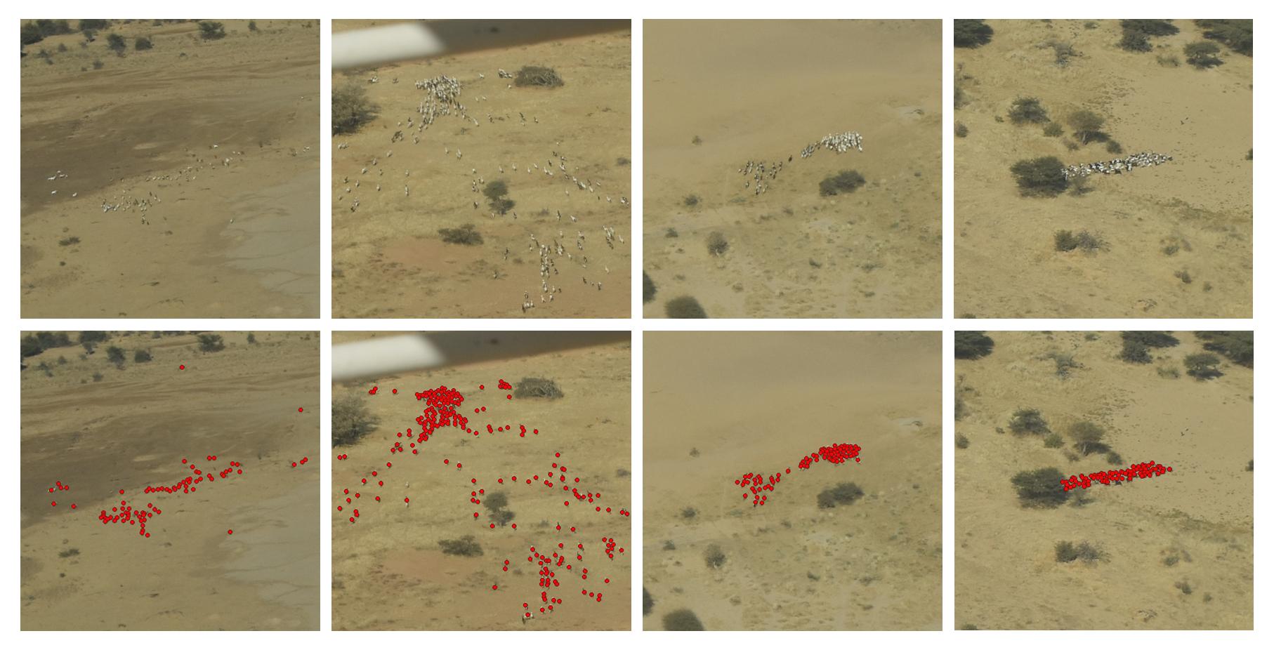 | HerdNet | 18M | Ennedi 2019 | Desert, xeric shrubland and grassland | Camel, donkey, sheep and goat | 73.6% | 6.1 | 9.8 | 15.8% | PTH file |