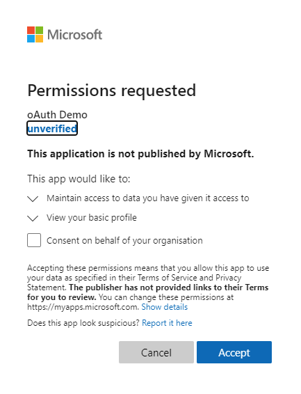 - If you allowed authentication from any tenant, and used the common endpoint (rather than your specific tenant ID), the user may be asked to allow your app to access their account. If they are on their home tenancy, you will have already approved this for all users.