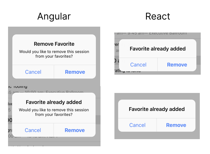I noticed that the react conference app behaves differently than the angular version in certain cases. Maybe we can make a tech debt ticket for these if we don't want to update them now?