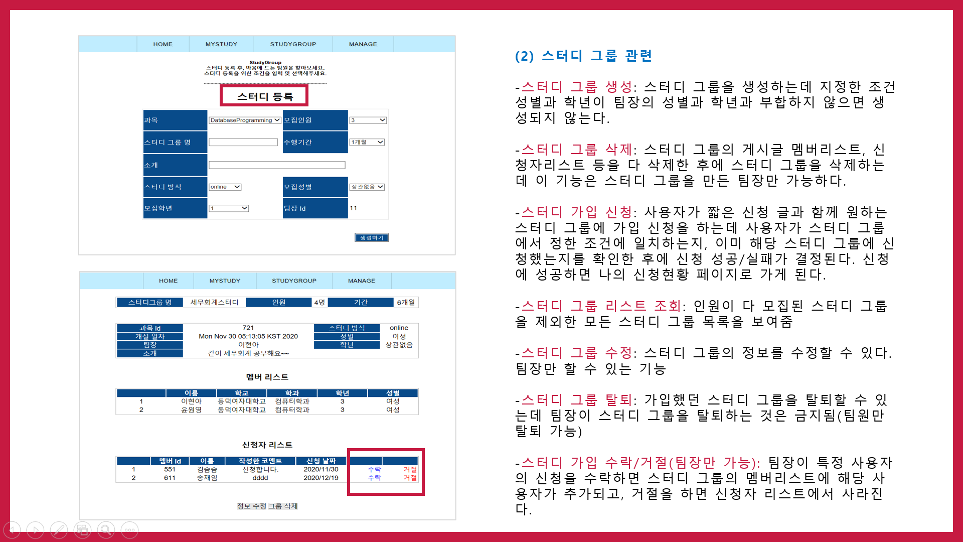 - 스터디 가입 수락/거절(팀장만 가능)